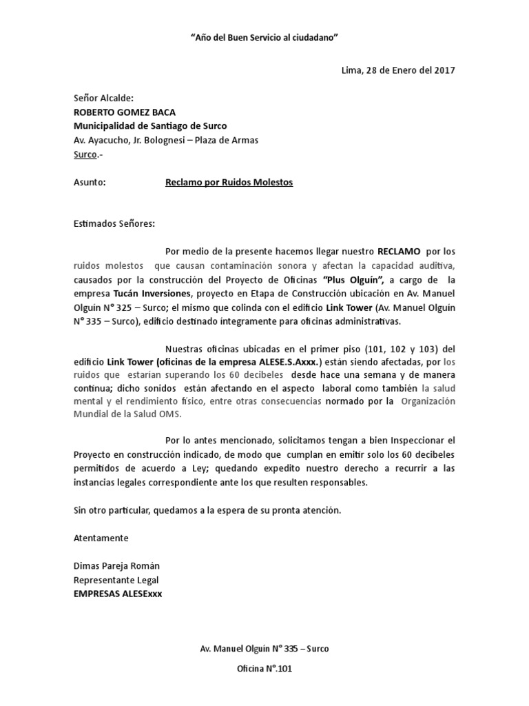 Carta De Reclamo A Municipalidad